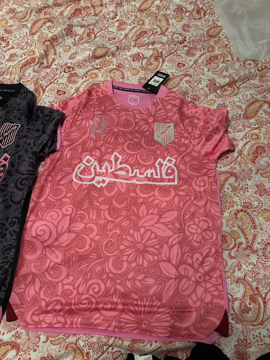 Arborant les couleurs emblématiques rouge, vert et noir du drapeau palestinien, chaque maillot se dresse comme un symbole de solidarité et d'espoir.
